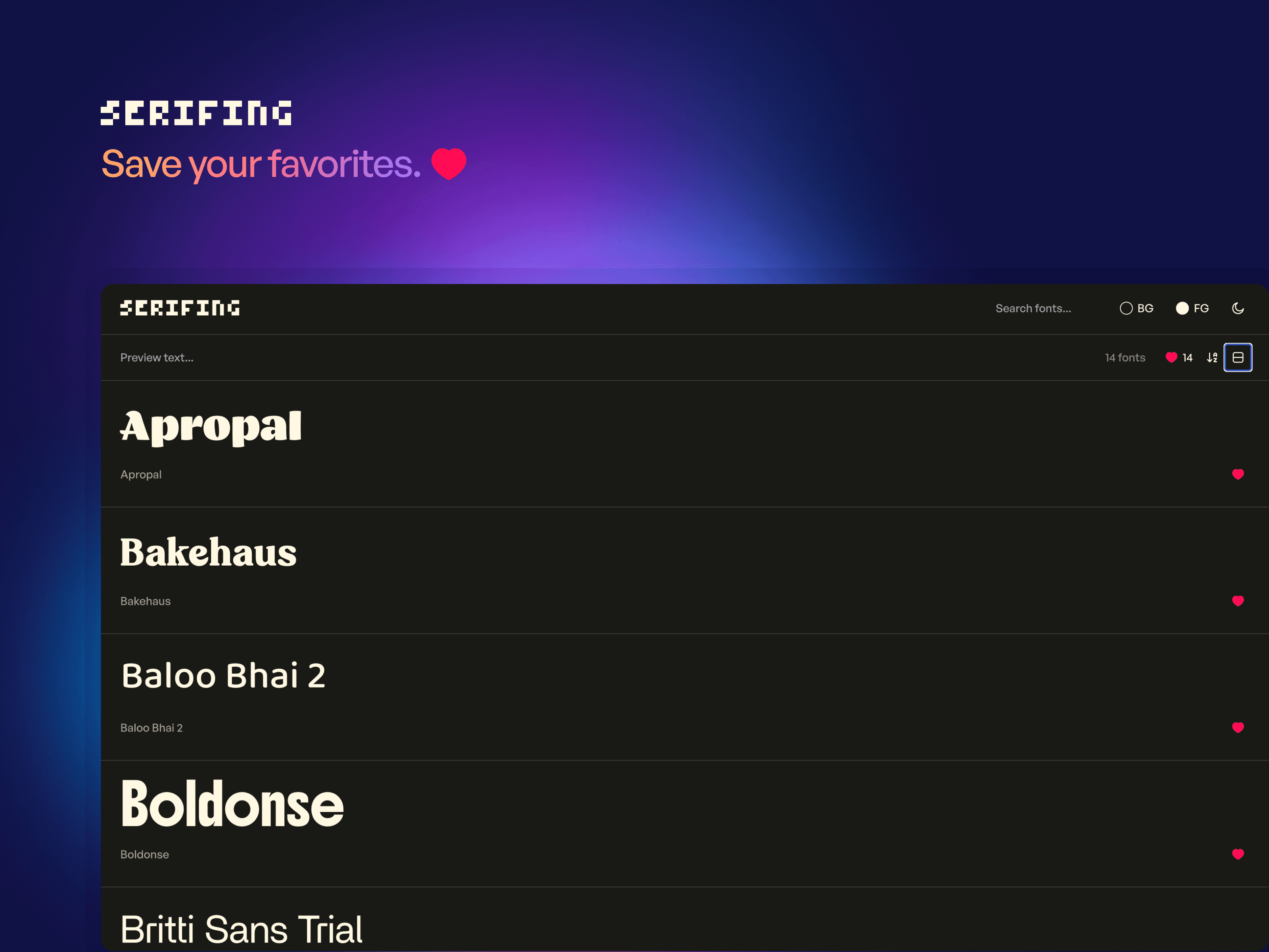 Curation & Discovery: Features "Like" functionality to build project-specific folders, effectively turning a messy "Fonts" folder into a curated design asset.
